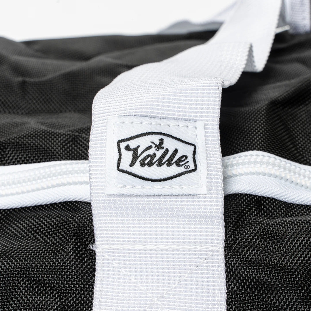 The highest quality equipment bag for baseball or softball players on the market. The Catcher’s Bag is made with the strongest quality material, 1680 Denier and the best quality zipper brand, the YKK zipper. The Valle Catcher’s Bag is made to last for you for years and has a look and design like no other. Dimensions of 35″ long with a 16″ diameter, makes it large enough for all your gear, including bats.