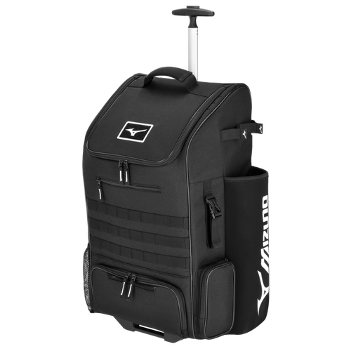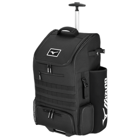 Elevate your game with the NEW Mizuno Pro Wheel Batpack, the ideal companion for baseball and softball players. This well-designed batpack offers features that make your time on the field more convenient. Safeguard your valuables, stay organized with the spacious main compartment, and carry up to four bats. With heavy-duty wheels and a telescopic handle, you can easily transport your gear, while a ventilated cleat compartment keeps your cleats fresh. Use the exterior loop buckle for securing your glove or helmet. The Mizuno Batpack ensures you're always ready to excel on the field.